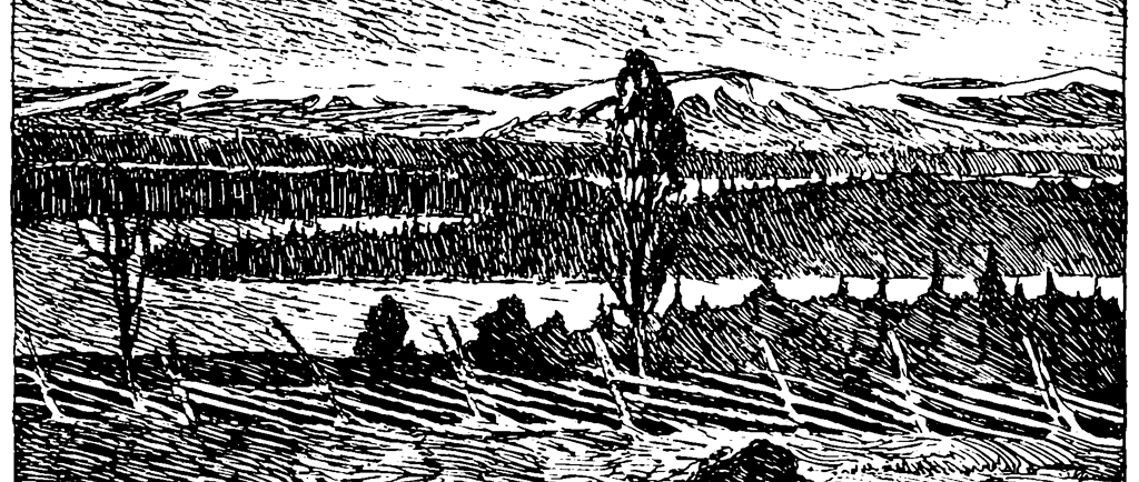 But when he first opened his eyes and looked around, he couldn’t understand what he saw or where he was. Once at a market he had been in a big round tent and seen a great big painted panorama that ran along the inside wall all the way around - and he thought he was in such a tent now: a big round tent with a nice red ceiling, while on the walls and floor a beautiful and sweeping landscape was painted. There were big villages and churches, fields and roads, a railroad, and even a city. But he soon noticed that this was not the case. Rather, he stood on the top of lookout tower with the red morning sky above and with real country around him. But he was so used to seeing nothing but wilderness that it really isn’t all that strange that he mistook a busy countryside to be just a painting.