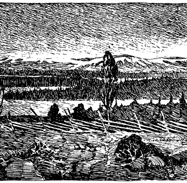 But there was something else, something more, that made the boy think that what he saw wasn’t real - it was that nothing seemed to have its proper color. The lookout tower where he stood rose up on top of a mountain, the mountain was on an island, and the island was near the eastern shore of a big lake. But this lake wasn’t gray the way lakes usually are, rather, most of the surface was pink as the sky at dawn, and in the deep bays it glittered nearly black. And the shores around the lake weren’t green, instead they were light yellow because they were covered with the stubble left on the grainfields and the yellowing autumn woods. Around all that yellow there was a wide band of black coniferous forest. Maybe it was because the leafy trees had yellowed, but the boy thought a spruce wood had never looked so dark as it did that morning. Beyond the dark spruce woods in the east he could see distant blue hills, but to the west, on the edge of sight, ran a long shimmering line of bare jagged mountains in many shapes. They wore such a mild and shining color that he couldn’t call it red nor white nor blue. There just wasn’t any name for it.