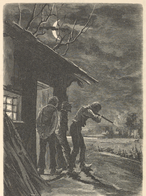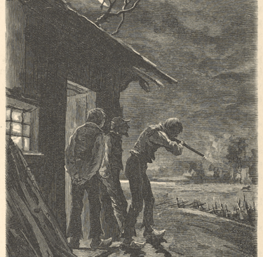 It was a bleak autumn night. Storm winds chased the clouds across the sky, and the halfmoon threw a dull light from between broken clouds. It didn’t take long before, in the uncertain moonlight, they saw something running past the edge of a thicket. The man threw his rifle to his shoulder and shot, as the others saw it, at random.